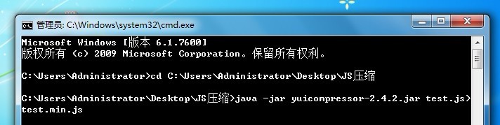 使用方法可從cmd到進(jìn)入yuicompressor.jar所在磁盤,我以自己的yuicompressor-2.4.2.jar為例: