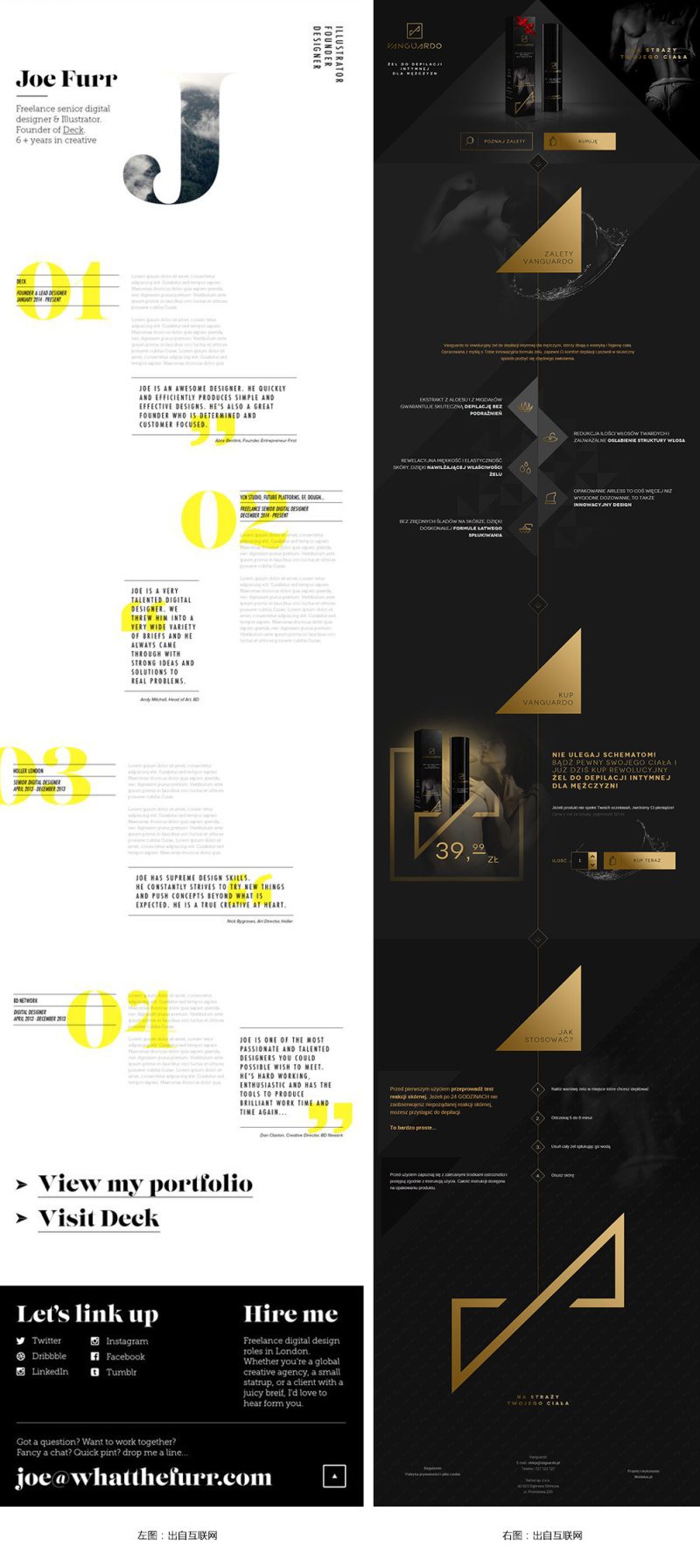 01.左圖是整塊的暗藍(lán)色的背景,沒(méi)有任何分區(qū),整體頁(yè)面看著比較統(tǒng)一;