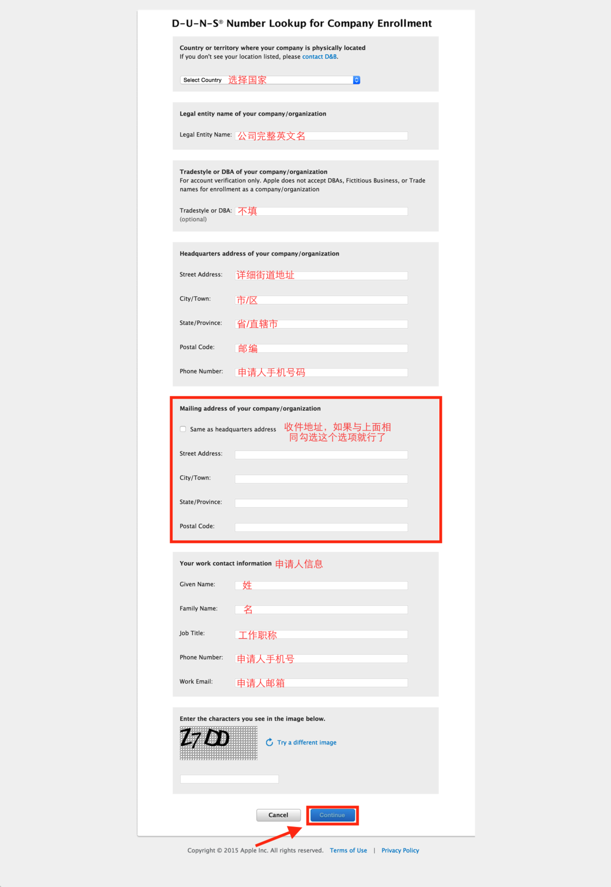 (2)有了鄧白氏碼,你就可以把上面的信息填寫(xiě)完整,然后可以繼續(xù)下一步,這個(gè)時(shí)候你們公司的基本信息已經(jīng)提交完整,就等著蘋(píng)果給你發(fā)郵件就行了。
