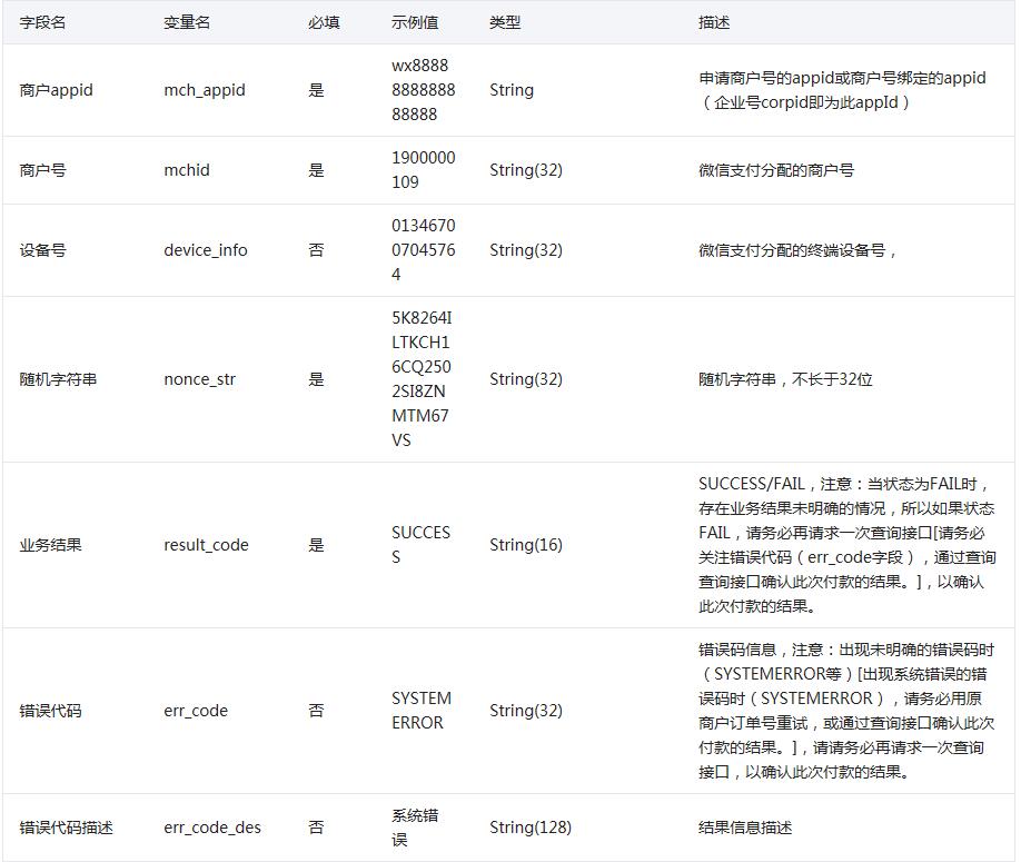 以下字段在return_code 和result_code都為SUCCESS的時(shí)候有返回