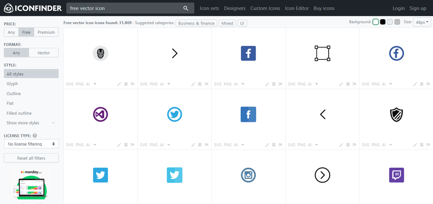 FlatIcon擁有超過(guò)961,000個(gè)免費(fèi)矢量圖標(biāo),被稱為網(wǎng)絡(luò)上最大的免費(fèi)矢量圖標(biāo)數(shù)據(jù)庫(kù)之一。 它的數(shù)據(jù)庫(kù)中包含PNG,SVG,EPS,PSD和BASE 64格式的免費(fèi)圖標(biāo),因此無(wú)論您正在尋找什么類型的矢量圖標(biāo),您都可以在這里找到需要的資源,包括其中一些最受歡迎的各種風(fēng)格的免費(fèi)社交媒體圖標(biāo)套裝。
