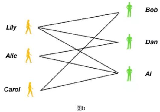 下圖 b 是著名的男女配對問題:左側(cè)3名女孩,右側(cè)3名男孩,連線代表他們互相喜歡,如果將互相喜歡的進(jìn)行兩兩配對,最多可以配出多少對?